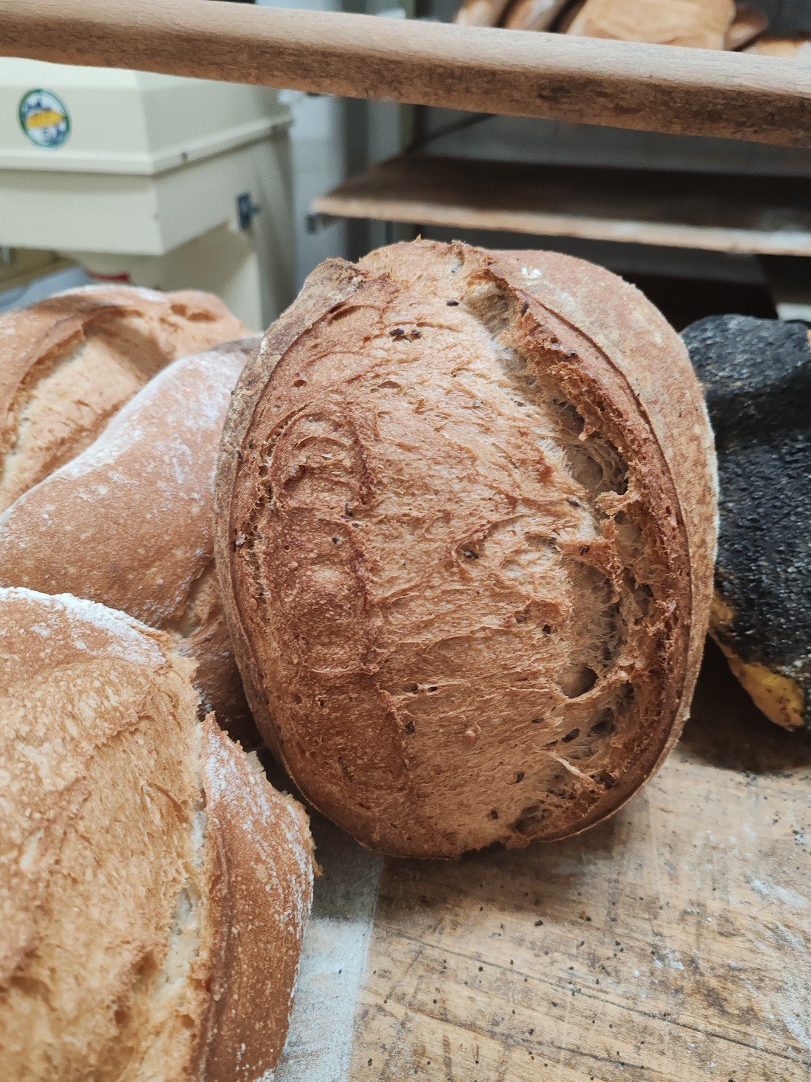 Utilizamos harinas ecológicas molidas a la piedra, masa madre natural y horneamos todos nuestros productos en horno de leña tradicional, lo que aporta un sabor y textura únicos. Nuestra pasión es ofrecer un producto auténtico, saludable y hecho con cariño, respetando los tiempos de fermentación y cuidando cada detalle del proceso.